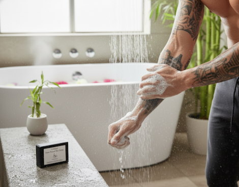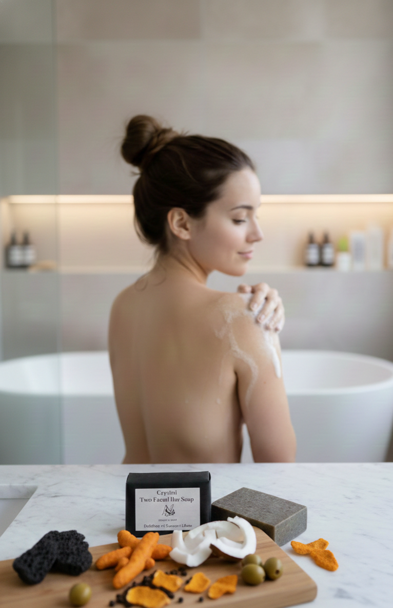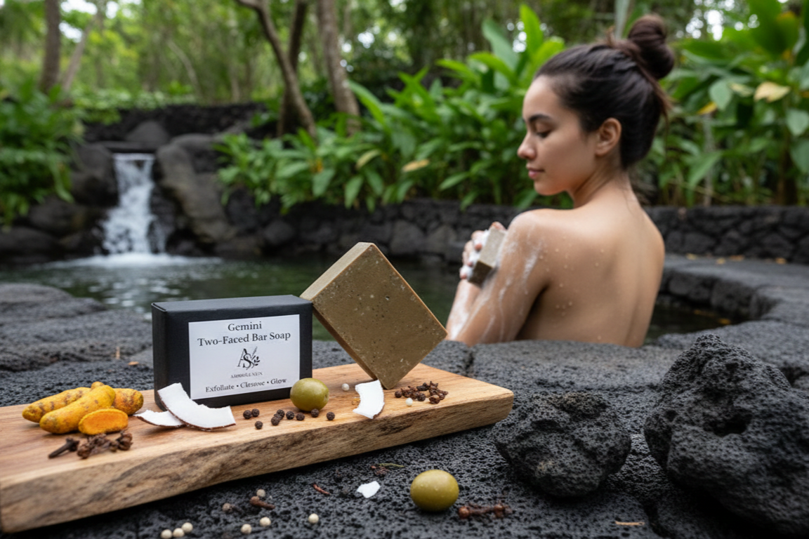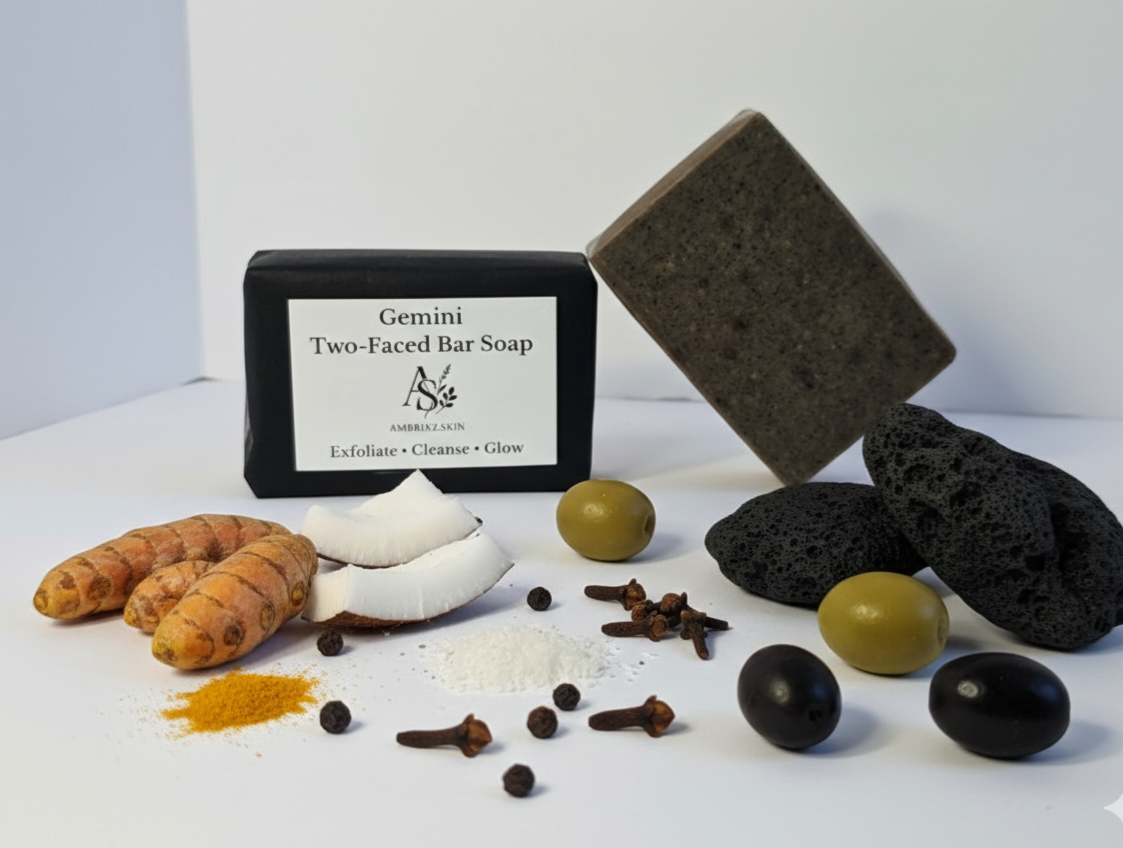 This pumice Bar Soap is a dual-action, multifunctional soap bar designed to act as both a deep cleanser and an exfoliating scrub, making it the perfect all-in-one skincare solution. The concept behind this bar is rooted in balance: two sides, two purposes, one beautifully effective product.