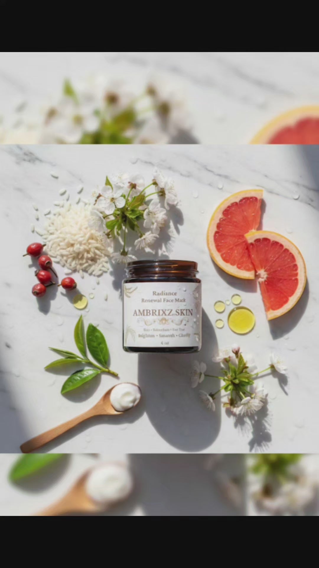 A luxurious, creamy face mask crafted with nutrient-rich rice and botanical oils to deeply hydrate, brighten, and restore skin radiance. Enriched with Bakuchiol and Rosehip Oil for collagen support and renewal, and infused with Cherry Blossom & Grapefruit for a fresh, luminous glow.